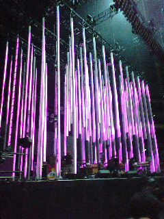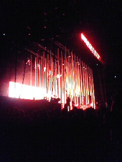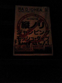 | ■10.04 さて、7年ぶりのレディオヘッドです。7年、、、なんでこんなに長い間みてなかったんだろう? アルバムの発売間隔が長いうえに前回公演みてないからなんですけどね・・・。 7年ぶりの割にはなかなか感情が高まらないけど、大宮駅のコインロッカーに荷物を預けるためにスーパーアリーナのあるさいたま新都心をとおりすぎたときに、「なんでアタシここで降りないの!一刻も早くここで降りたい!」気持ちになり、なんとなくテンションの高鳴りを感じる。 大宮駅はでかい割りにはコインロッカーが少なく。ちょうどロッカーに荷物を取りに来た人がいたので使えたけど、あの人がいなかったら途方にくれていた。ありがとう、単に荷物をとりにきたお兄さん。 いろいろあって開場にたどり着いたのが開演30分前。すでに結構人がいる。17時頃、時間通りにモードセレクター登場。 ああいう音楽(なんつーの、ファットボーイスリム的な音?全然違うかな・・・)はあまり聴かないけど、まあ割りとよいと思う。ただ、歌がほとんど入ってないのでダメだった。わたし基本歌入ってない音楽は苦手。 トムのソロアルバムの曲のリミックスかなんかをかけてたけど、割と反応が薄かった気がする。みんな知らないのかなぁ。まぁわたしも曲名はわかんないんだけど。 モードセレクターからレディへまでの時間は30分のはずなので、前座終わる5分くらい前にトイレへ。トイレに並んでて冒頭見逃すとかあったら最低でしょ?トイレっ子はその辺慎重だ。 つつがなく前座は終了し、レディオヘッドのステージ準備。 今回のツアーのステージは、ステージいっぱいに宙からぶらさげられているパイプが印象的でステキだけど、前座のときは端っこに寄せられてたのよね。あ、あれ動くんだ(当たり前)、と当たり前のことに開場してから気づいたわけだけど、両端からパイプをアコーディオンカーテンのように広げていく。なるほどね〜〜。 パイプ準備中に、スタッフが天井からぶら下がってるライトめがけて縄はしごを上っていって、今そこで準備!?と思ったらステージ終わるまでそこから降りてこなかった。ライブ中ずっとあんな不安定な場所でライティングしてたのかな?大変! さて、そうこうしているうちに彼らが登場ですよ! オープニングは15ステップからだ〜〜。このツアーはこの流れが多いね!そして2曲目は、、、エドがスティック持ってるってことはThere Thereだぁ〜〜〜!! エドの太鼓ステキ!!っていうか、エド、長身で黒ジャケットに黒パンツ、超かっこいいんですけど!暑くないのか!wそういえばトムはこの日も赤パンツだった。洗濯してるのかw There Thereで猛烈に盛り上がり、やっぱりレディへは最高だ〜〜〜と思ってるところにThe National Anthem!!きたぁ〜〜〜〜!か、かっこいい!! ・・・とここまではよかったんですが。 その後急にスイッチが切れちゃって。 気づくと、なんか妙に冷静で、彼らがそこにいるのにテレビの中とか別世界の出来事みたいで。 え、あたしどうしたんだろう?だってレディオヘッドだよ?なんだこれ?なんだこの感情?? って混乱しちゃいまして。 まぁ、あまり好きじゃないスローな曲ばかりやられてちょっと冷めちゃったみたいで、そのせいでその合間にある好きな曲さえもハマりきれず、なんかぽかーんとしちゃった感じ。 レディへはミドルテンポな曲がもともと多いけど、最近は前にも増してスローな曲が多く。CDで聴いてるとそういうのもいいな、と思うんだけど、ライブだとやっぱりロックテイストな曲がいいわ。わたし自身、ギターがしがし言ってる音のほうが好きだし。 だからJigsaw からIdiotequeの流れでまた持ち返して、その後のExit Musicでホント、感極まった。 ただ、2万人もいる場内がシーンと静まりかえっていて、トムがアコギでExit Musicのイントロを奏で出して、すっごくきれいないい場面だったのに、どっかのバカがイントロ中ずっと叫んでいて、久しぶりに殺意を覚えた。 そう、今回のライブ、曲間がすごい静かなの。普通曲終わったあととかざわついたりすると思うんだけど、結構シーンとしてて、なんか緊張感があった。 曲が終わるたびにライティングも終わってシンプルな白というかシルバー一色になるから、なんか、スタジオライブみてるみたいな印象だったんだよね。スクリーンのショットもレディへらしかった。メンバーの顔がなかなか映らないw Faust Arp、トムとジョニーのアコギだったんだけど、ギターの音とトムの声だけが鳴り響いていて、なんていうのかなぁ。とにかくいい感じだったんだ。この曲、30秒くらい弾いたあとに「やっぱやり直し」って言ってやり直してた。そのときトムが「Thank You, Good Night」って冗談で帰る振りしてたのがかわいかったなぁ。 たしかこのとき、トムとジョニーです。っていまさらな自己紹介してたなぁ。 もともとあまりしゃべるタイプじゃないけど、ときおりまぜる日本語(おはようございます。こんばんわ。どうもありがとう)、おはよ