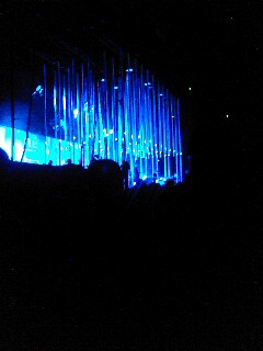 | ■10.07 今日はトムの40回目の誕生日! トムの誕生日に同じ空間で過ごせて、さらにはライブまで見られるなんて、本当にうれしいよ。 ちなみにこの日のライブ、ダフ屋で一階席5万、二階席3万の値がついてたらしい。ダフ屋までトムの誕生日情報を仕入れている始末。どうなってるんだ。 この日もオープニングアクトにモードセレクター。トイレに行く途中でたぶん今回のツアーに何度も参加していると思われる人から、「もう飽きた」って声が。あ、アタシも飽きたわ、いい加減。 東京国際フォーラムには初めてきた。たしか、レディオヘッドはOK Computer 時代にここでライブをやっていたはず。そのとき以来なのかな。あの頃はライブハウスクラスの会場でも公演してたよなぁ。。。 当時、たしかトムが「宇宙船みたいな会場」って言ってた記憶があるのでどんなところだろうと思っていたけど、まぁ宇宙船と言えば宇宙船。どっちかっていうと、ホールAよりも別の建物のほうが宇宙船っぽかった。 今日のオープニングはAll I Need から。を、変えてきましたね、トムさん。この曲はIt's All Wrong, It's All Right, It's All Rightの部分がとても好きだよ。トムの伸びやかな声。 二曲目は15 Step 、続けてThe National Anthem 。三日も着てるとさすがに流れには驚かなくなってきた(苦笑)。 15 Stepまではパイプがライティングされてなくて、アレ?国際フォーラムではないの??と思ったけど、The National Anthem で一気にきた。あれは盛り上げるための演出かな?赤の激しいライティングだったよね。たしか。コレは違う曲だっけか?? 「ゲンキデスカー?」と観客に声をかけるトム。そのトムさんが持っているのはタンバリン、、、ってことは、もしかしてアレか?? キタ!I Might Be Wrong !!3日目でも初めての曲を聴けるとはーーー!さすがレディオヘッド! I Might Be Wrong で上げたあとに、Nude 。今回、上げて落としてが多いかも。Nude はライティングが本当にきれいで、どうにかしてこの脳内に残っている光景を写真かなんかに焼き付けられないんだろうか。 さいたま2日間は興奮のあまりステージ全体をあまり見ることができていなかったようで、今回あらためてステージの照明の美しさに気づいた。 どれも曲の雰囲気に合わせたライティングとスクリーンショットで、曲のイメージを上手く増長させていたと思う。 Nudeは、、、なんて表現したらいいんだろう。赤茶ベースの光に星がちりばめられているみたいで、宇宙的な感じで幻想的ですっごくステキだった。 Pyramid Song では、淡いグリーンのライト。スクリーンも同じ色で、波に漂うような雰囲気が出されている。これ、この曲のPVのイメージだよね。 Wierd Fishes は今日で三回目だけど、何回見ても美しくて、その美しさに圧倒される。明るい青に光が上下していて。。。波が揺らめいているよう、って言ってる人がいたけど、海の底がどうの、って歌詞だから、きっとそうなんだろうな。 続けてWhere I End And You Begin 。この曲はホント好きなんだけど、ライブではあまり好きじゃないかな。。。 Myxomatosis ではいつにない激しいパフォーマンスを見せるトム。トムはギターやその他楽器を弾くせいか、マイクスタンド立ててそれに向かって歌うことがほとんどだけど、この曲ではマイクを持って激しく踊りながら歌う。 この曲を歌ってる人とNudeとかReckoner歌ってる人が同じ人なのかぁ。。。と不思議な気分になる。 ジョニーとトムの寄り添いギターが印象的なFaust Arp が続き、次にきたのがKID A!!あらーーーー!コレやるの!?歌詞何歌ってるか相変わらずわからないよ!! KID Aで観客を驚かせたあとに Jigsaw Falling Into Place 。もうね、これはね、問答無用でかっこいいんだけど、聴けば聴くほどかっこいい。 昨日までの流れだとこのあとはIdioteque だけど、今日はReckoner 。初日から気になってたけど、Reckoner のときはトムの声がより一層響いている気がする。この曲もライブだとより一層美しい。 そしてClimbing Up The Wall 。今日はノーベル賞がどうの、ってニュース音声だった。ホテルに戻ったらホントにそのニュースやってた。ホントに、って別に疑ってるわけではないんですが。 そしてあら!またきたよExit Music!!コレ二回も聴けるのーー!うれしい!! Exit Music は本当に本当に美しくて、気づくと椅子席のギリギリまで身を乗り出して、口をぽかーんとあけて聴き入っていた。ライブでここまで曲に圧倒されたのは初めてかも。 今日のライブは、一曲目からそうだったんだけど、彼らの圧倒的な演奏に観客が呑まれていたと思う。曲が終わった後ってどんな曲でも拍手のほかに歓声や奇声が上がると思うんだけど、今日は「拍手だけ」ってのが多かった。周りでも踊ってる人とか結構いたし、決してノリが悪かったのではなく、迫力ある演奏に声がでない感じ。 Exit Music でしんみりさせて、その後はBodysnatchers 。コレも問答無用でかっこいい!コレで終わりかな〜って思ったらその後How To Disappear Completey がキタ!! コ、コレが二回聴けるとは!!(